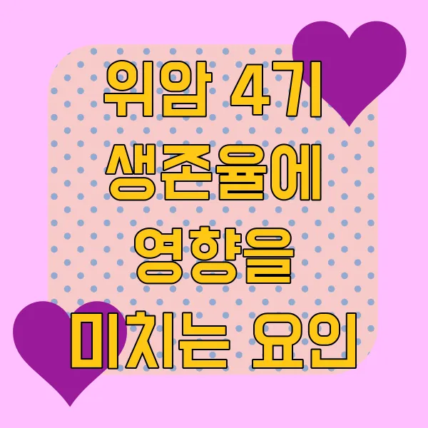 위암 4기라면 정말 마음이 무거우실 것 같아요. 하지만 희망을 놓지 않는 것이 중요합니다! 위암 4기 생존율에 영향을 미치는 요인은 생각보다 다양하고, 그 요인들을 잘 이해하면 치료 과정에 도움이 될 수 있을 거예요. 자, 그럼 어떤 요인들이 있는지 함께 살펴볼까요~?