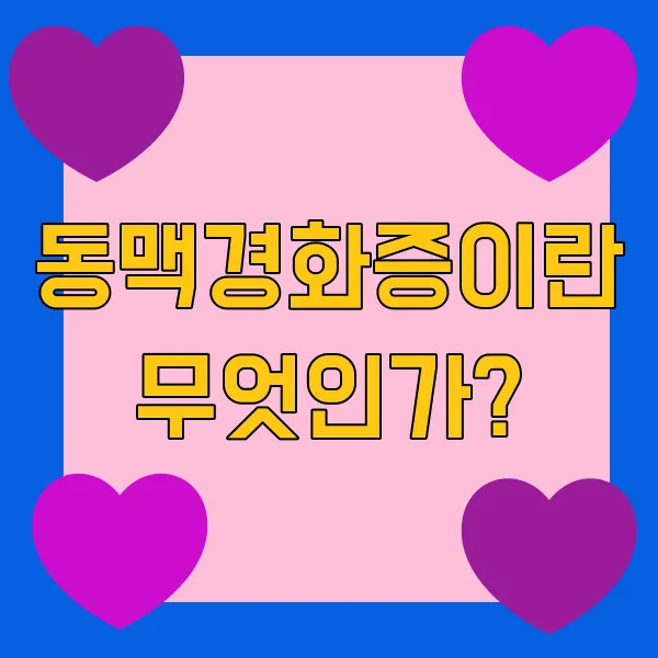 우리 몸의 혈관은 마치 고속도로처럼 혈액을 온몸으로 전달하는 중요한 역할을 합니다. 이 혈관 중에서도 동맥 은 심장에서 나온 혈액을 온몸으로 보내는 통로인데요, 이 동맥의 내벽에 콜레스테롤, 지방, 칼슘 등이 쌓여 딱딱해지고 좁아지는 현상, 이것이 바로 동맥경화증 입니다! 마치 수도관에 녹이 슬어 막히는 것과 비슷하다고 생각하시면 돼요~