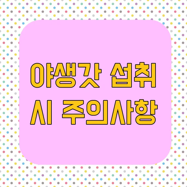 야생갓 , 그 톡 쏘는 매력에 푹 빠져 맘껏 즐기고 싶지만, 잠깐! 섭취 전에 몇 가지 알아둬야 할 사항들이 있어요. 😊 무턱대고 먹었다간 예상치 못한 불편함을 겪을 수도 있으니, 지금부터 꼼꼼하게 살펴볼까요?
